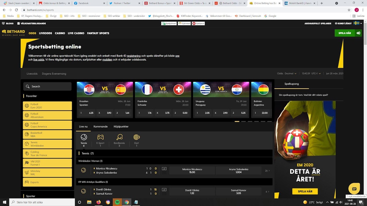 Sajten är smart uppbyggd för live betting och det är enkelt att navigera sig runt på livebetting sektionen.